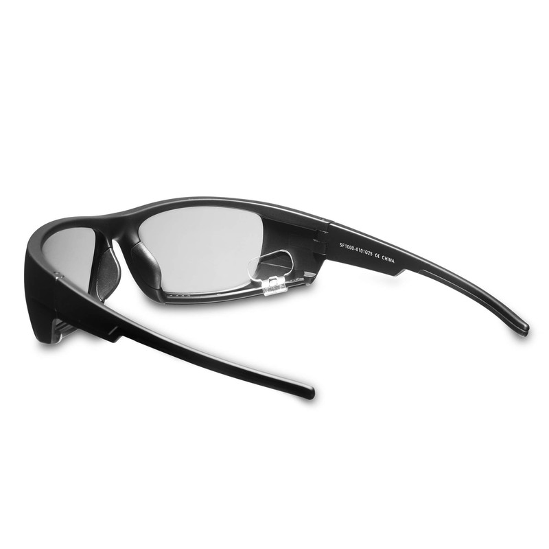 • Polarized sunglass lenses minimize glare from view during regular and focused viewing.
