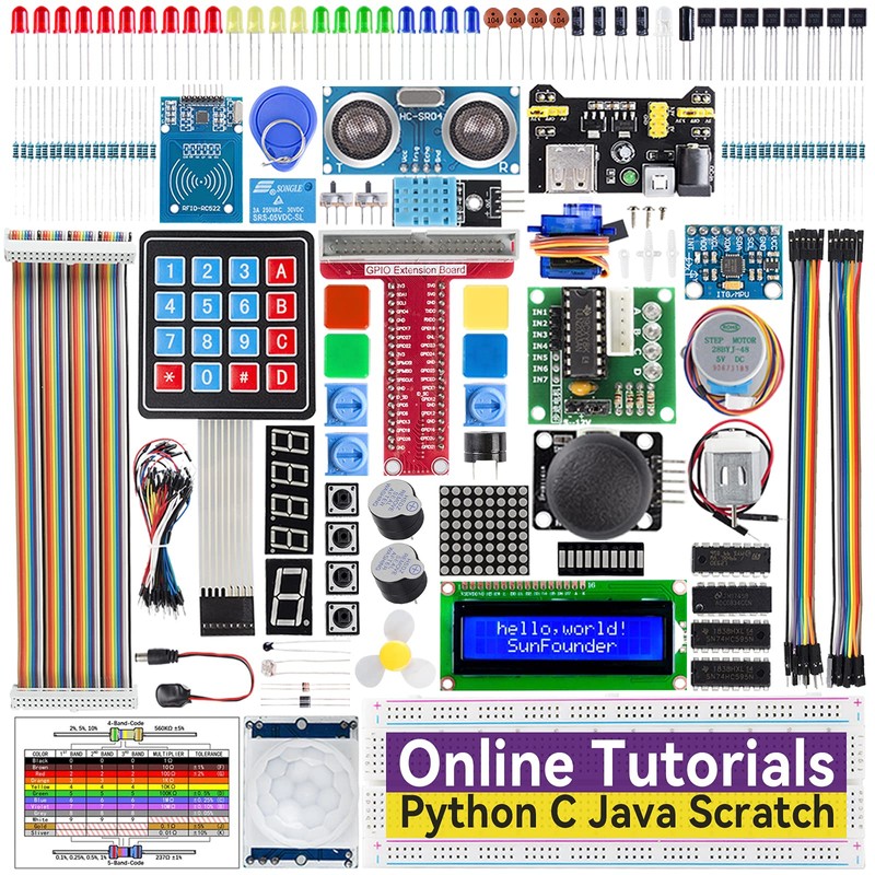 SUNFOUNDER Raspberry Pi Starter Kit for Raspberry Pi 4B 3 B+ 400, 537 Page Online Tutorials, Python C Java Scratch Code, 300 Items, 65 Projects for Beginners Raspberry Pi