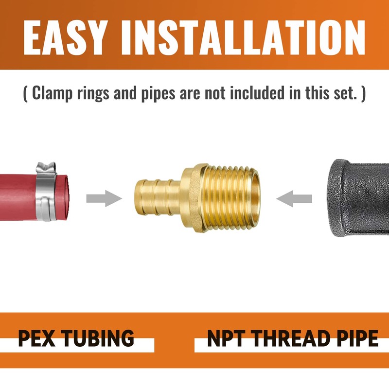 • 【Applications】: This brass crimp fitting can be used for PEX pipes in plumbing jobs. (Clamp rings are not included in this set.) Suitable for Pex A,B,C Tubing, but not uponor system.