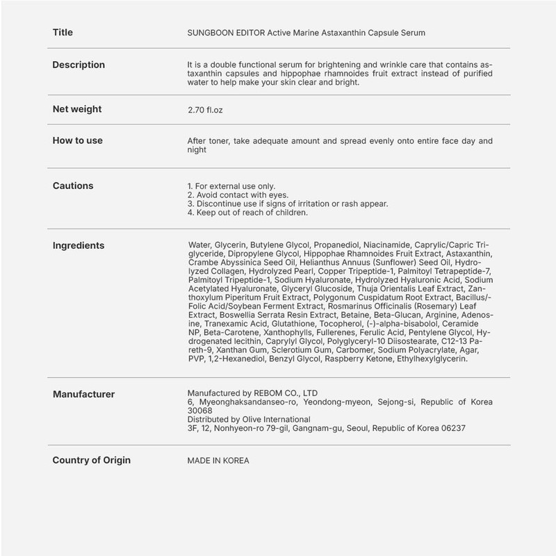 SUNGBOON EDITOR SUNGBOON EDITOR Active Marine Astaxanthin Serum 30ml | Even Skin Tone | Hydration & Vitalizing