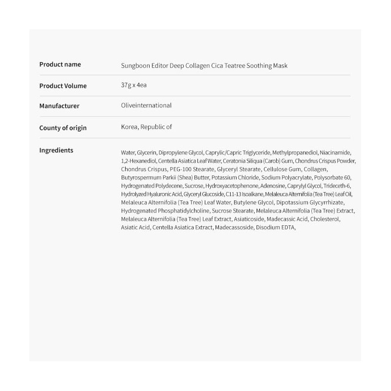 SUNGBOON EDITOR SUNGBOON EDITOR Deep Collagen CICA Tea tree Overnight Mask 37gx4ea | Real Collagen Face Mask with Tea tree & Centella | Acne Face Mask for Calming & Soothing | Korean Skin Care