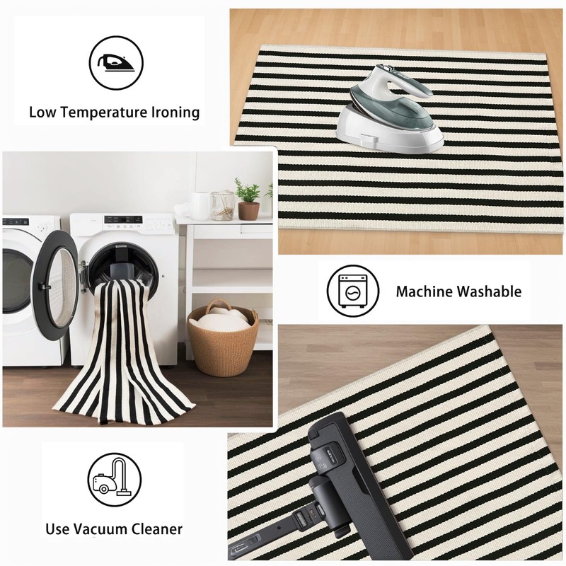- Non-Slip Rug Pad Required: The reversible cotton rug is lightweight and has no rubber backing. To prevent the rug from shifting when walking on it, we recommend pairing it with a rug pad