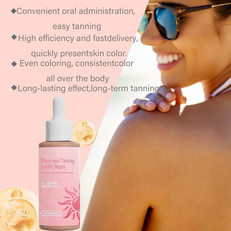 - 【Natural Tan Without the SunWithout the sun, you can still get a sun-like glow. Our sunless tanning drops naturally promote the production of melanin, giving your skin a beautiful, tanned look