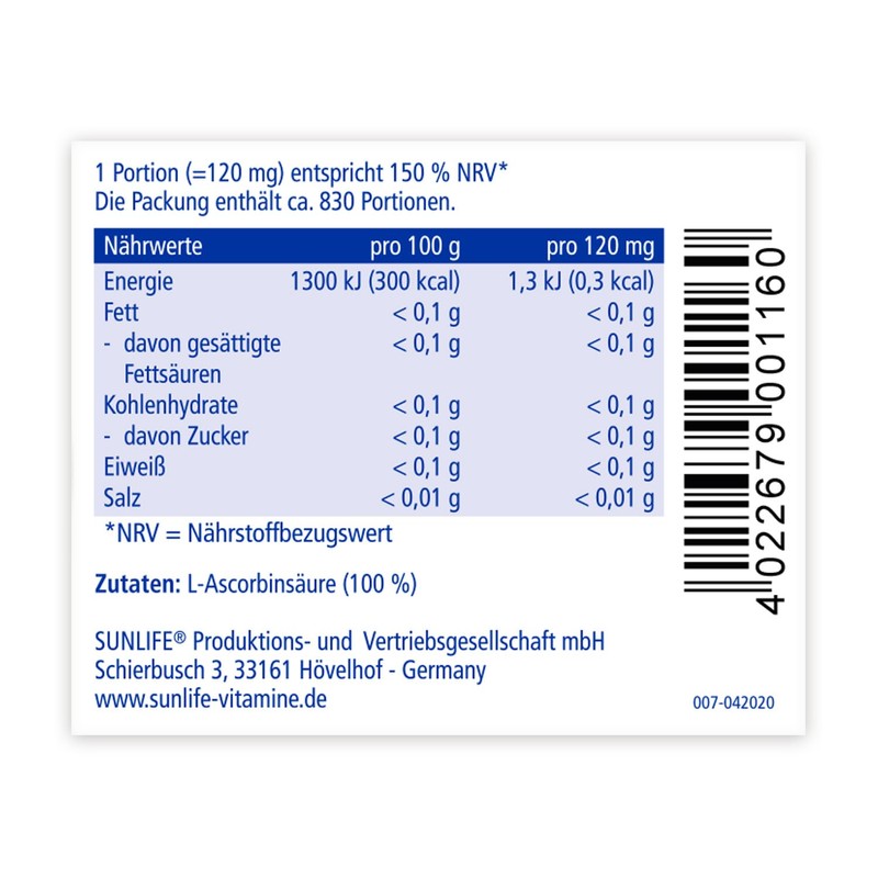 • High-quality food supplement – the Sunlife vitamin C powder is a dietary supplement with high-dose vitamin C and provides your body with additional nutrients.