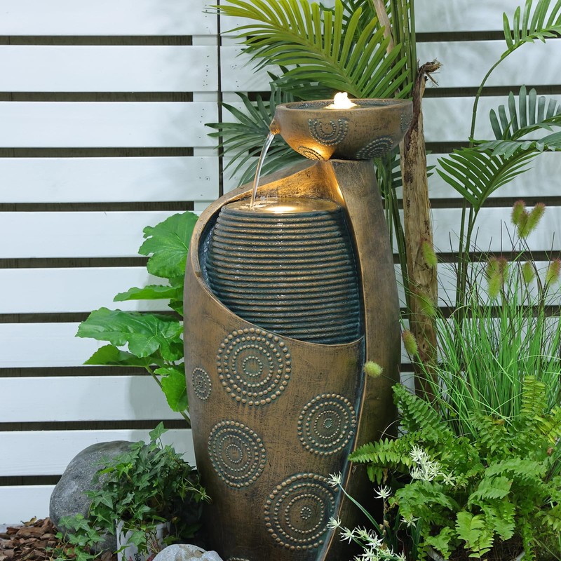 - WEATHER-RESILIENT: Made of durable resin and fiberglass material with a natural look and realistic texture, weatherproof, rustproof and durable. Whether placed indoors or outdoors, the fountains will work for you for a long time.