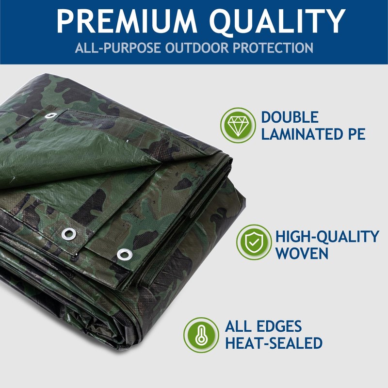 - 【MULTIPURPOSE USE】SUNLITAP waterproof tarp has a wide range of applications. Whether you need ground covers, tent flooring, RV and boat covers, backyard sunshades, or protection for damaged roofs and outdoor furniture, it offers the perfect coverage! It can also provide campers with a shelter from the wind, rain, or sun. Regardless of the application, our tarps offer a sturdier, more durable solution for long-term coverage or protection needs