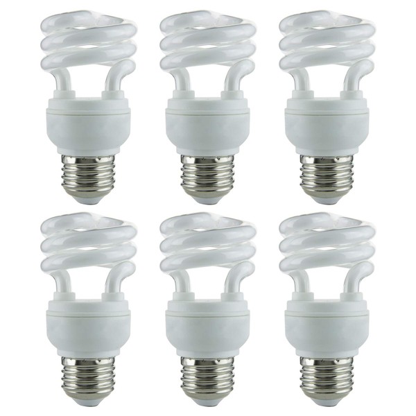 Sunlite 41462-SU Mini Spiral CFL Light Bulb, 9 Watts (40W Equivalent), Medium Base (E26), 500 Lumens, 10,000 Hour Life Span, 4100K Cool White 6 Count