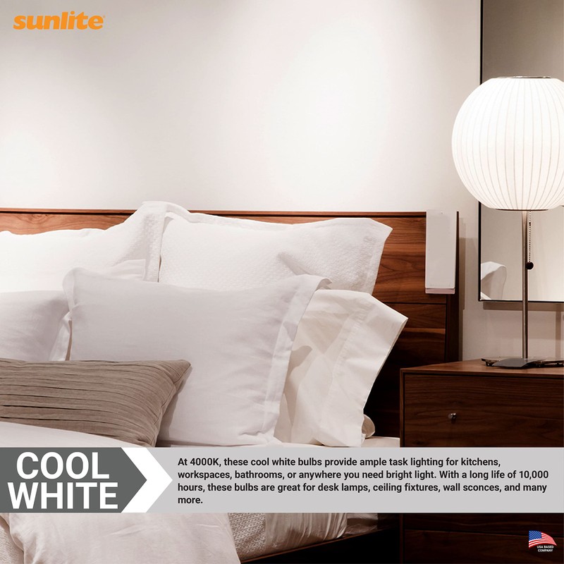 - COOL WHITE - Cool white color temperature (4100K) provides ample crisp lighting for bathrooms, bedrooms, stairways, or anywhere you need cool light. 500 Lumen output.