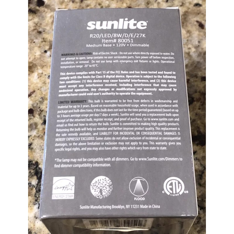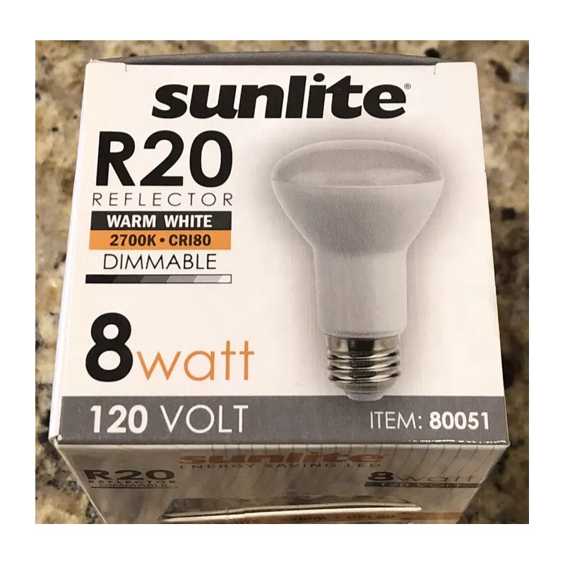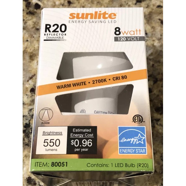 Sunlite R20 LED 8 Watt (50W Equivalent) Dimmable 2700K WARM WHITE Item: 80051