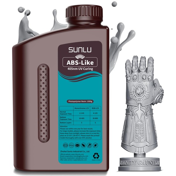 - ①【Less Brittle & More Strength】- Compared to other types of 3D Printer Resin, SUNLU ABS-Like Photopolymer Resin has better toughness, Non-brittle and has excellent abrasion resistance. If you need to print miniature or tiny objects, SUNLU ABS-Like 3D Printer Resin is your first choice.