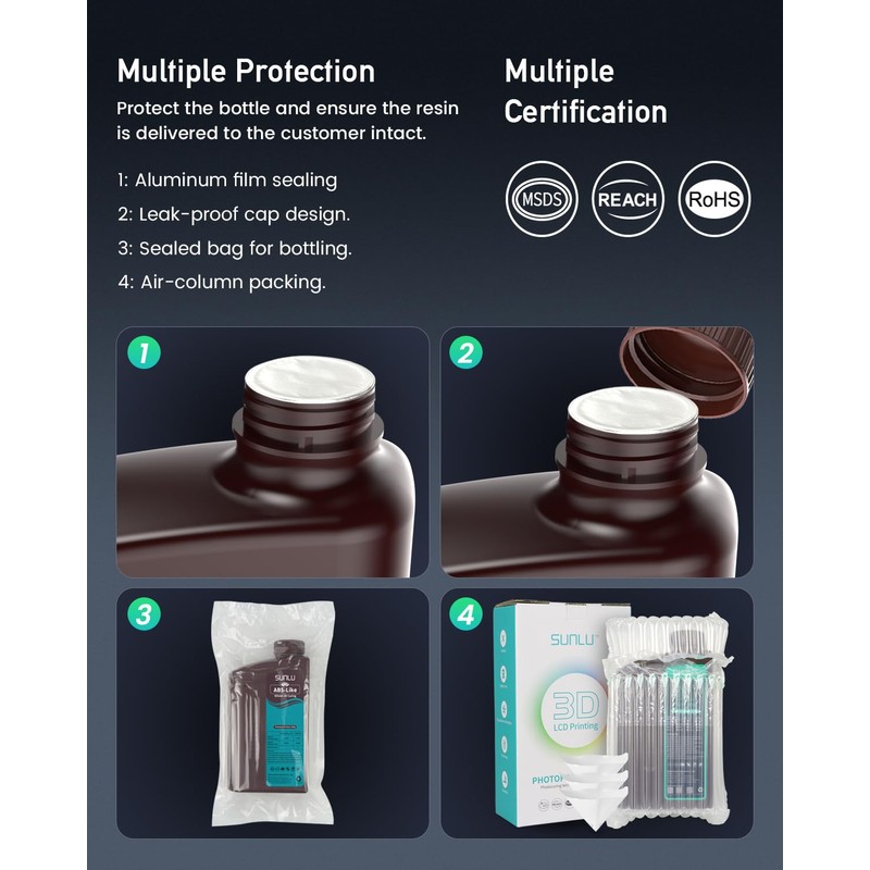 - ⑤【Leak-proof & Secure Packaging】- SUNLU 405nm UV Curing Standard Photopolymer Rapid Resin has the safe package with leak-proof bottle design. Reduce the risk of cap breakage and 3d resin leakage. The bottle is surrounded by a tight-fitting air bag. No worries for leakage during transport.