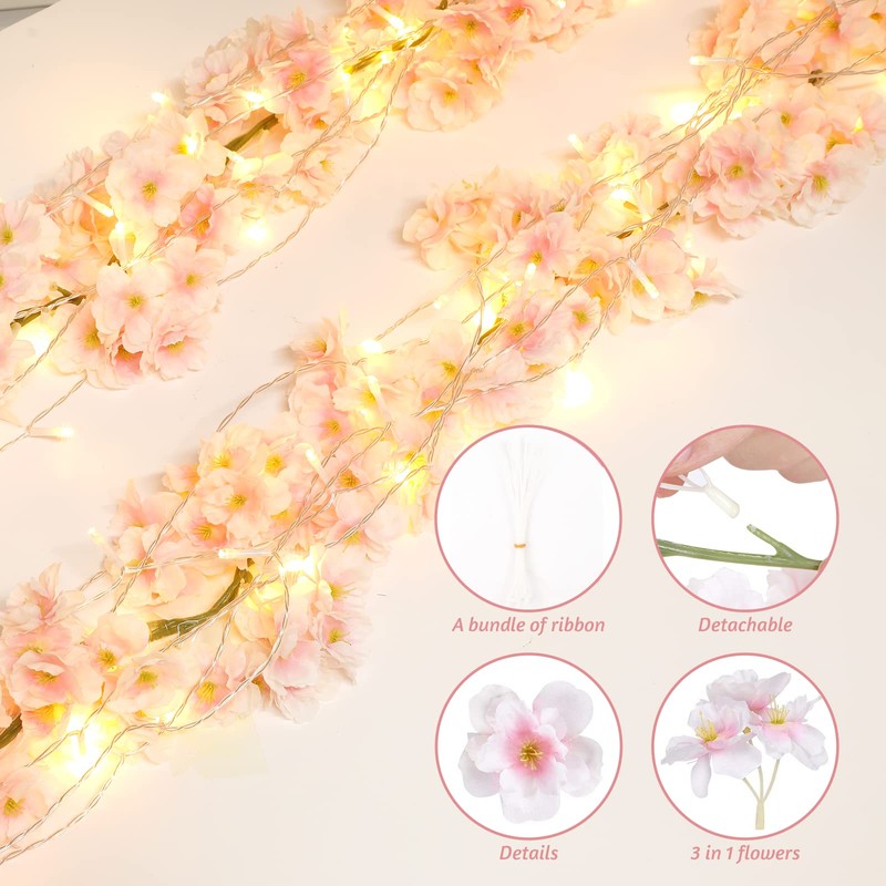- MULTI-FUNCTIONAL: A perfect decoration for home, hotel and park, etc. Cherry blossom garland brings stark freshness to your home or outdoor party decor. They will brighten any arrangement, twist this trimming around your garden archway, or cascade from a tree branch. Besides, it is a great photo tool.