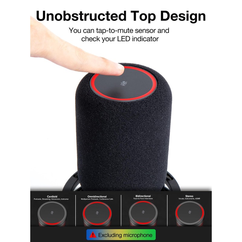 • Easy Mode Switching & Light Monitoring - The mic pop filter features a hollow top design for effortless access to the microphone’s lights and mode switching.