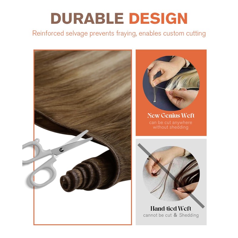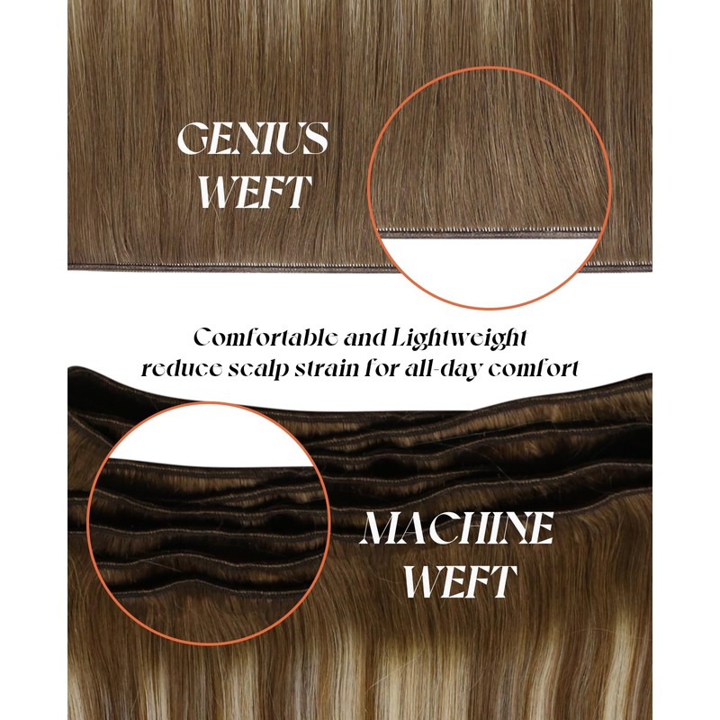 - Seamless Fusion, Natural Look: Genius Weft Extensions blend naturally with your hair, ensuring no short hairs and a neat appearance. Incorporating backcombing aligns hair cuticles in one direction, minimizing tangles and enhancing the product's longevity