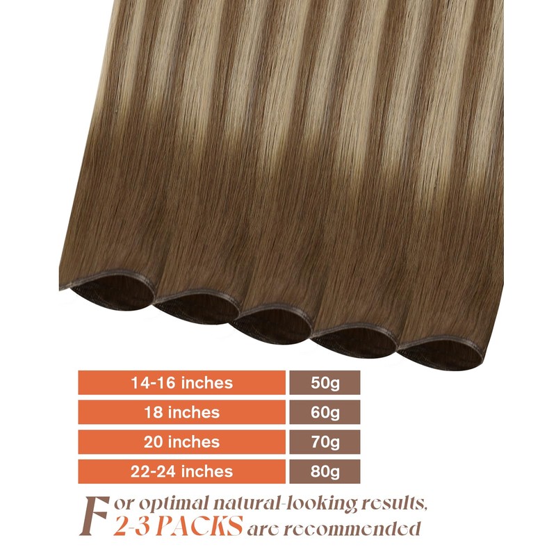 - Specifications: Sunny Hair Genius Weft Extensions are available in sizes: 14-16 inches (50g), 18 inches (60g), 20 inches (70g), and 22-24 inches (80g). For optimal natural-looking results, 2-3 packs are recommended