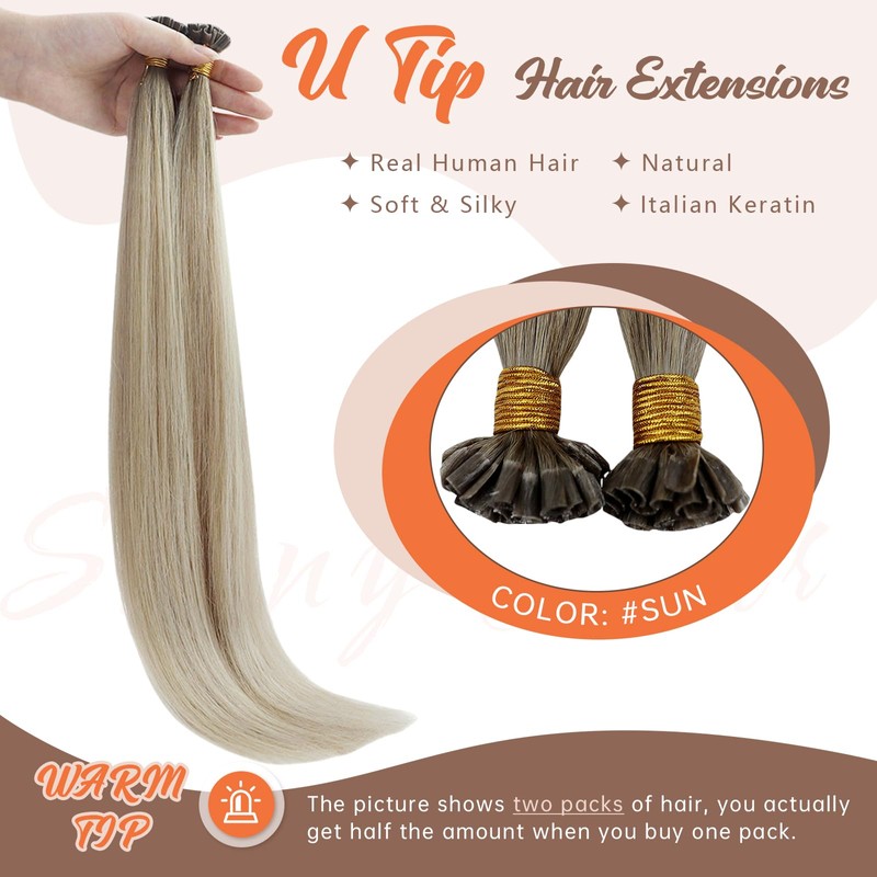 Sunny Hair Blonde U Tip Hair Extensions 22inch Utip Hair Extensions Balayage Ash Blonde Ombre Platinum Blonde K Tip Hair Extensions Stylish U Tip Hair Extensions Invisible U Tip Hair Extensions 50g