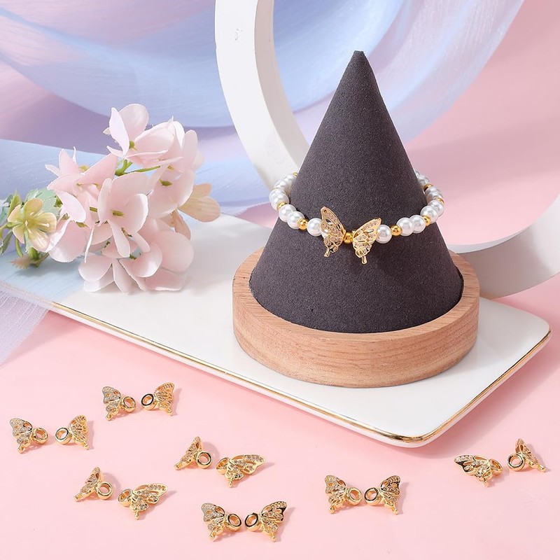 - [GOLD BUTTERFLY BEADS]: The gold butterfly beads with vivid shape and transparent cubic zirconia decorated, beautiful and fashionable. The left and right wings can make a pair to be a butterfly shape, both are good to have a round bead in middle or not. Ingenious designs, good workmanship, can make your bracelets more eye-catching.