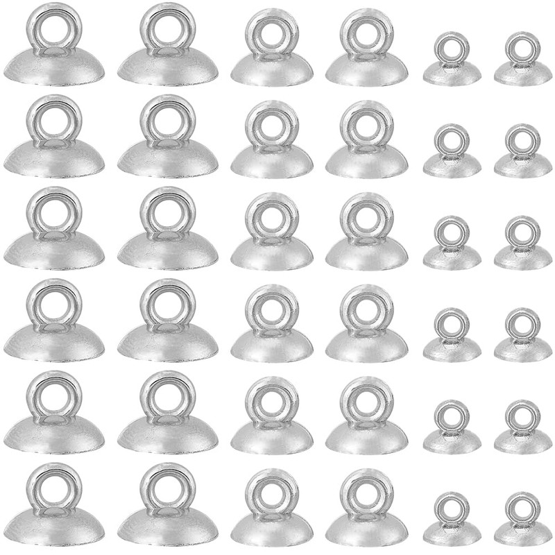 - SIZE: There are 3 sizes of pendant bail cap, 100pcs of each size, total 300pcs. The largest cup pearl peg bails: about 10mm(0.4inch) wide, 7mm(0.28inch) long, inner: 9mm/ 0.36in, hole: 2mm/ 0.08in; The medium cup pearl peg bails: about 8mm(0.32inch) wide, 7mm(0.28inch) long, inner: 7mm/ 0.28in, hole: 2.5mm/ 0.1in; The smallest cup pearl peg bails: about 6mm(0.24inch) wide, 5mm(0.2inch) long, hole: 1.6mm/ 0.06in.