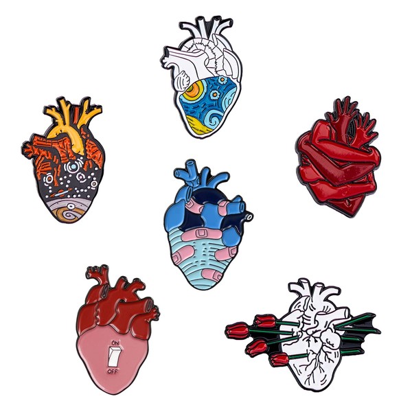 - 1 BOX 6 STYLES ANATOMIC HEART BROOCH: 6 styles anatomical heart brooches, enamel pin, excellent embellishment makes the bag beautiful.