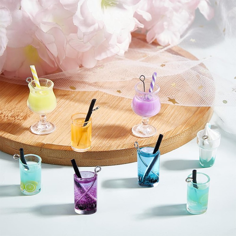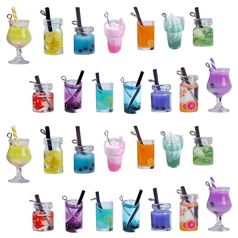 SUNNYCLUE 1 Schachtel 7 Stile Milchtee-Frucht-Anhänger Mini-Flasche Boba-Eiscreme-Anhänger Getränkeimitat-Harzglas-Schmuckzubehör Zubehör Für Frauen Zum Basteln von Ohrringen Und Halsketten