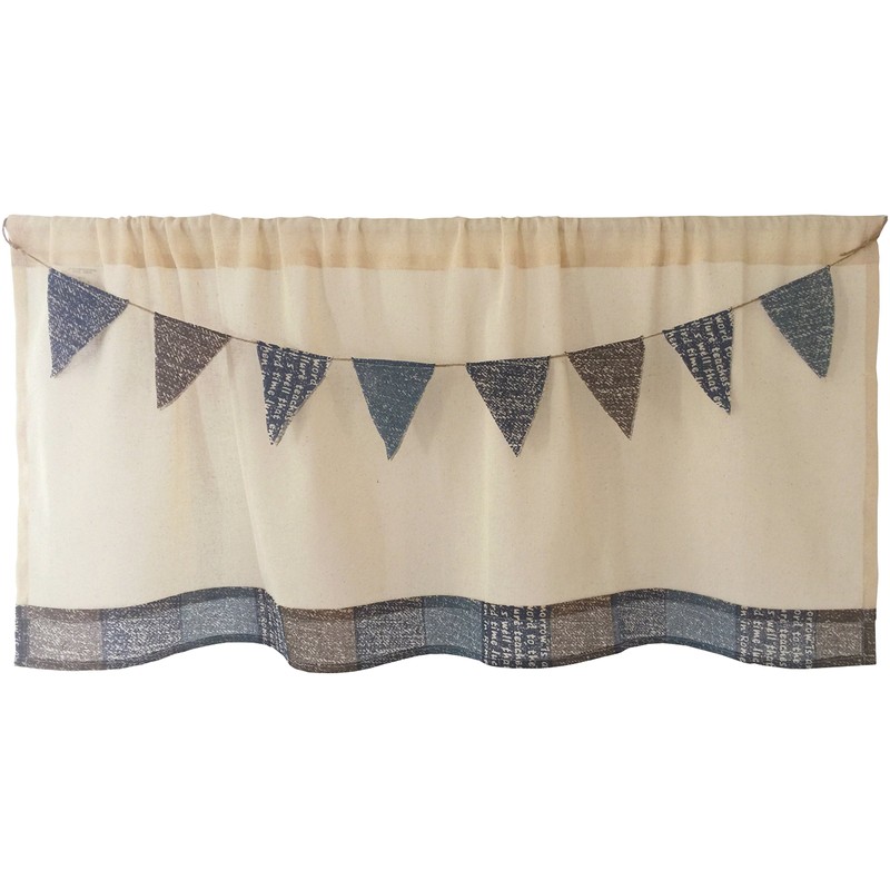 - Design: A natural cafe curtain with a patchwork style that adds playfulness to the garland. The garland flag is removable, so you can enjoy it as a simple cafe curtain depending on your mood