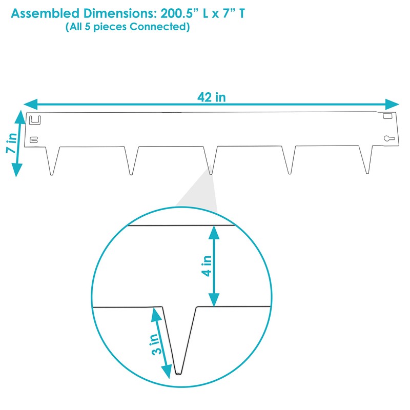 - Ample amount of edging: Each flower bed edging section measures 42" W x 7" H and weighs 3 lbs. The total length of the edging is 16.7'. Each section has 5 spikes that stick 3" into the ground, and the spikes are spaced 7" apart.
