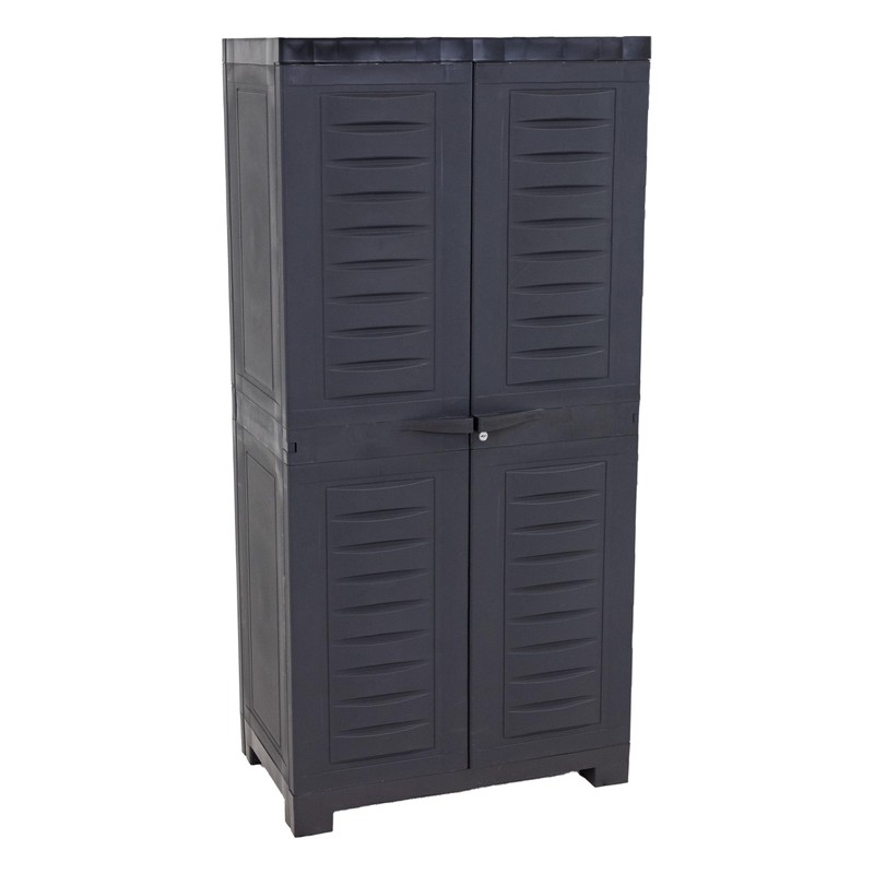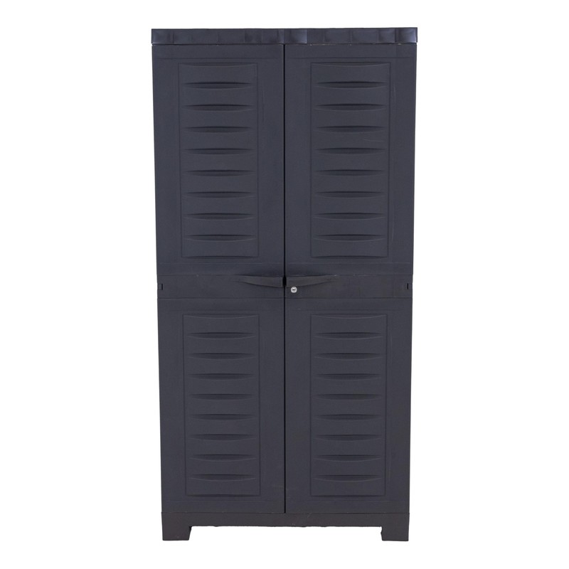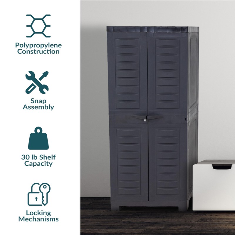 - HEAVY-DUTY MATERIAL: Made from durable polypropylene, this lockable laundry storage cabinet with shelves is built for indoor use. Polypropylene won't peel or rust, unlike metal or wood, making caring for this cabinet almost maintenance-free.