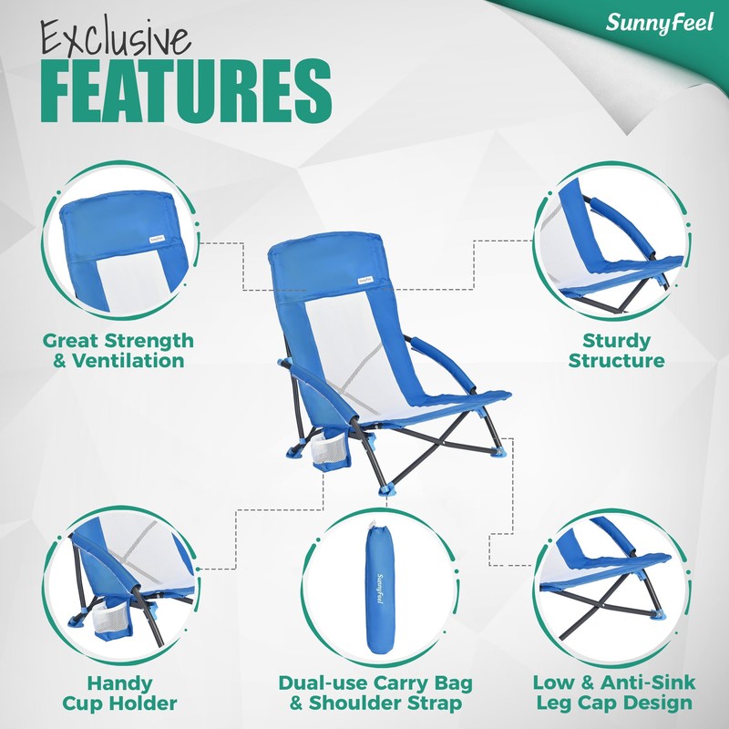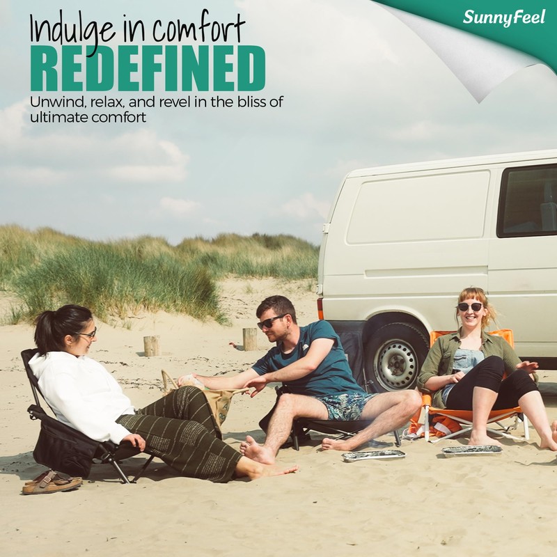 - A Low Profile Sling Camping Chair that is Built for Anywhere: Use it as a camping chair, folding chair, lawn chair, travel chair, beach chair and more. Suitable for outdoor adventures, tailgating, fishing, backpacking, beach, picnic, sport games, car travelling, or just put it in the backyard, cabin, balcony, patio lawn parties. The SunnyFeel camping chair is an essential to add to your camping accessories.