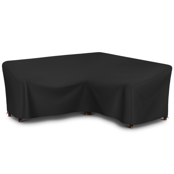 SunPatio Outdoor Sectional Sofa Cover, Patio Furniture Covers 420D Waterproof Couch Cover V-Shaped Cover for Sofa UV Resistant Windproof,All Weather Protection 85" W (on Each Side) Black