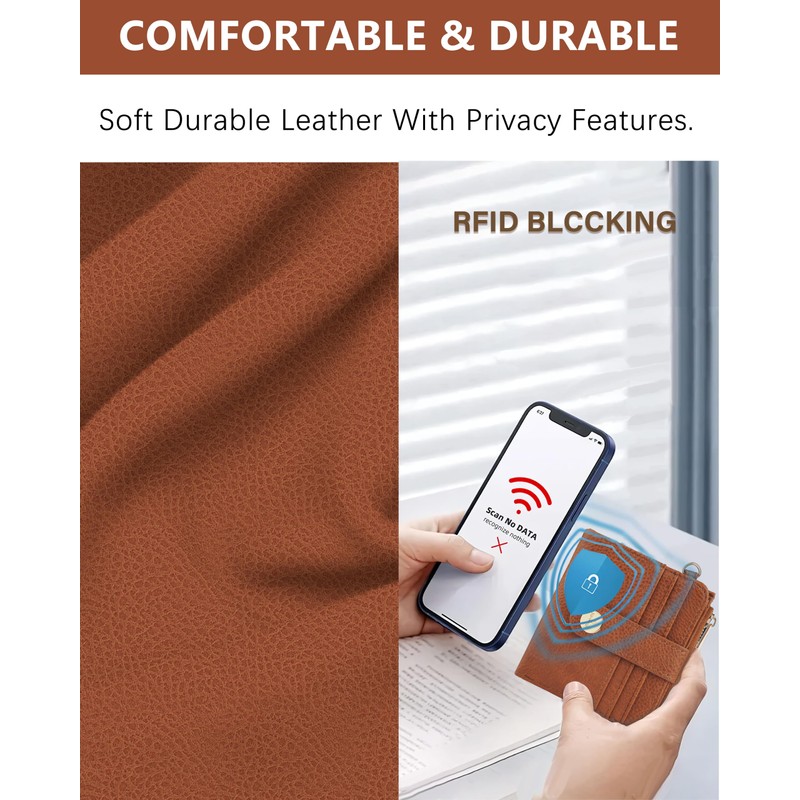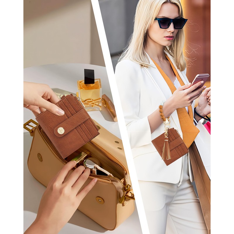 - COMFORTABLE & DURABLE: This small wallets woman with wristlet features a keychain made from BPA-free silicone and natural wood beads, paired with a soft faux leather women's wallet. The classic bi-fold design includes a multi-point snap closure, ensuring security at various capacities. Its durable construction features high-quality metal fittings, a smooth zipper, and sturdy stitching, offering reliable storage for your cards, cash, coins, and keys.