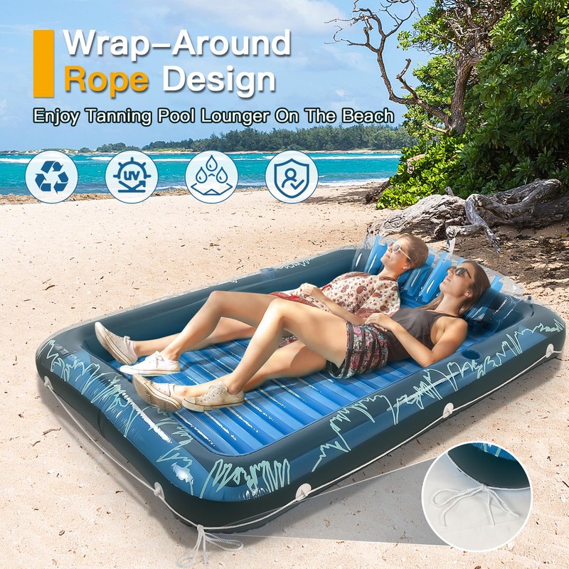 - Ultimate Tanning Experience: This inflatable tanning pool lounger float is the perfect accessory for sun worshippers who want to tan in comfort and style. Enjoy the sun's rays while lounging on this luxurious float that provides the perfect amount of support and relaxation.