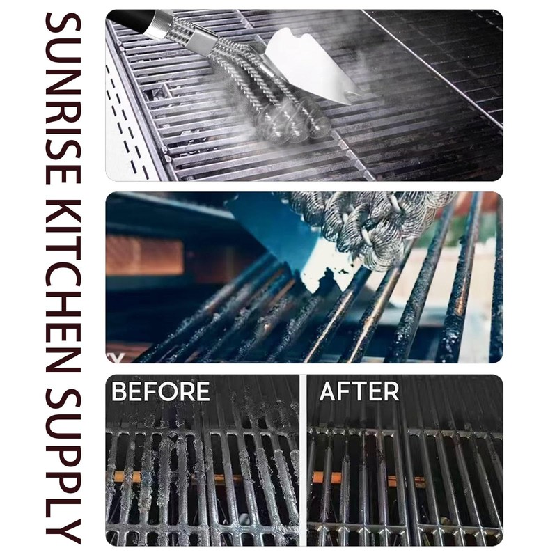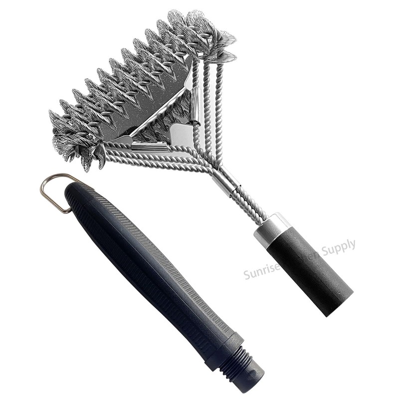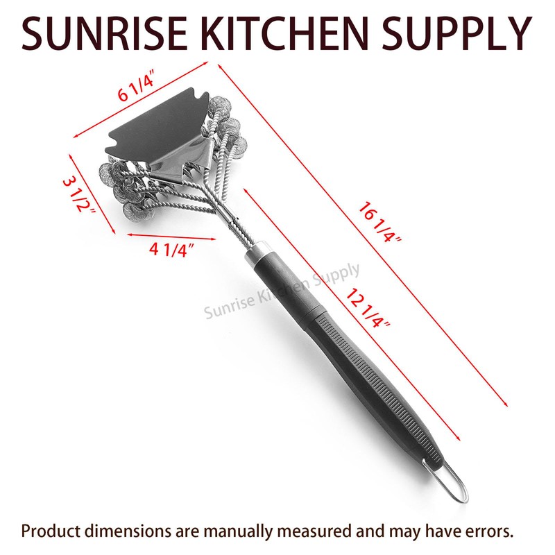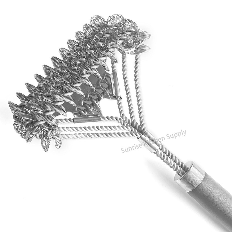 SUNRISE High Grade Stainless Steel BBQ Grill Brush with Scraper, Bristle Free, Extra Strong 3 Rows Brush Head, Bristle Free Design