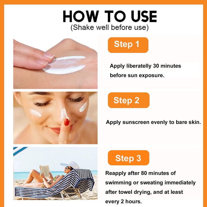 - 【Daily Skincare Essential】: This sun cream is easy to incorporate into your daily skincare routine and can be applied as the last step before makeup. It is highly recommended to apply at least 30 minutes before engaging in outdoor activities for optimal results, and to reapply after swimming, sports, or towel drying to maintain protection.