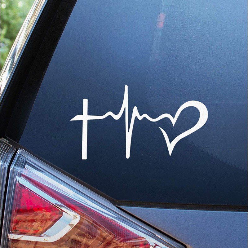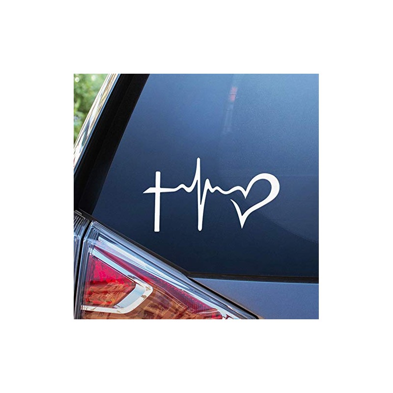 Sunset Graphics & Decals Christian Life Line - Cross & Heart Decal Vinyl Car Sticker Jesus Religious | Cars Trucks Vans Walls Laptop | White | 6 inch | SGD000070