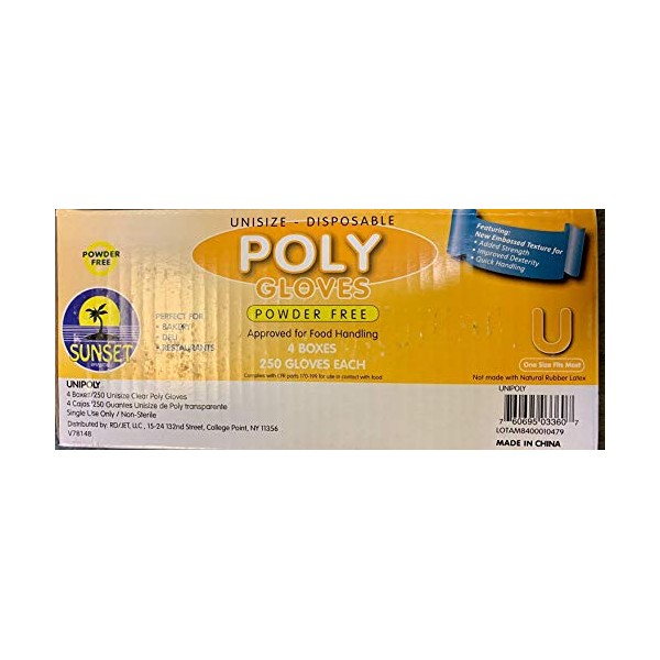 Sunset: Poly Gloves- Powder Free- Unisize- 4 boxes/250 each