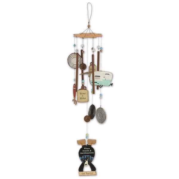 • Camper trailer themed chime features bear with the message: Where friends and marshmallows get toasted