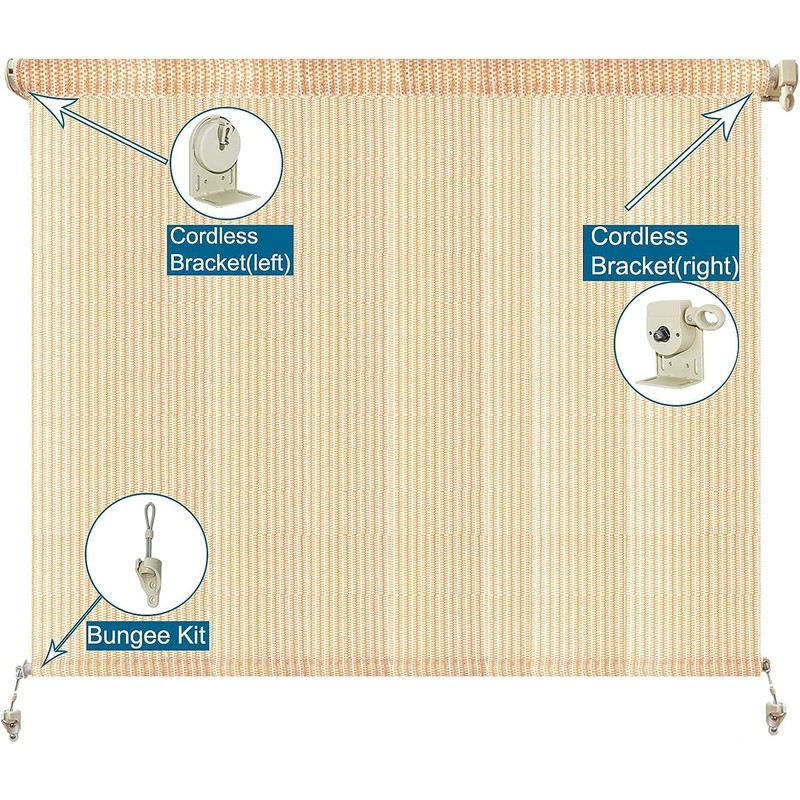 Universal Replacement of Exterior Sun Shades Outdoor/Indoor Roller up Blinds (3-Pack Bungee kit with end Cap, Beige)