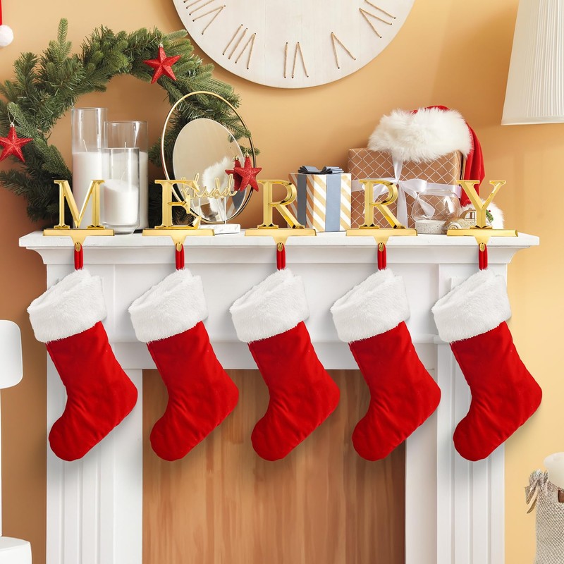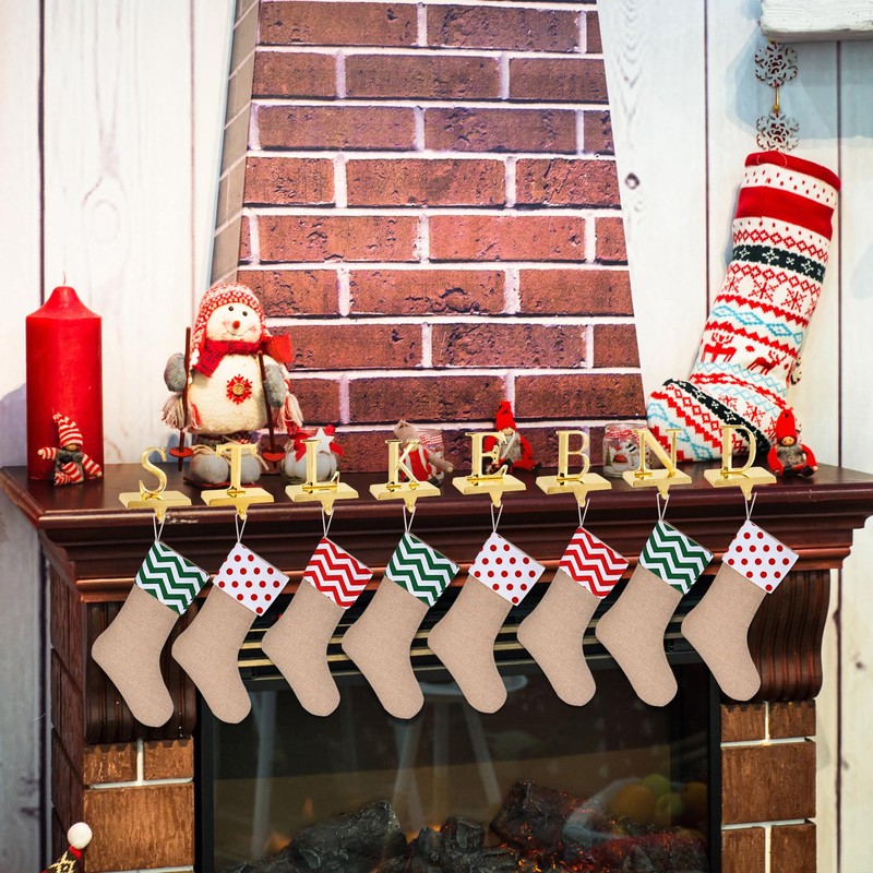 Sunshane Monogrammed Christmas Stocking Holder with Initials Mantel Stocking Hanger Hooks with Letters Gold Metal Fireplace Mantle Monogram Stockings Bases for Xmas Party Decorations (Letter J)