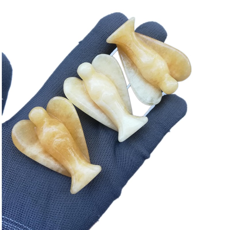 Sunshcat Natural Yellow Jade Healing Crystal Prayer Guardian Angel Statue,2 Inchs Carving Pocket Palm Crystals and Healing Stones Figurines Decoration