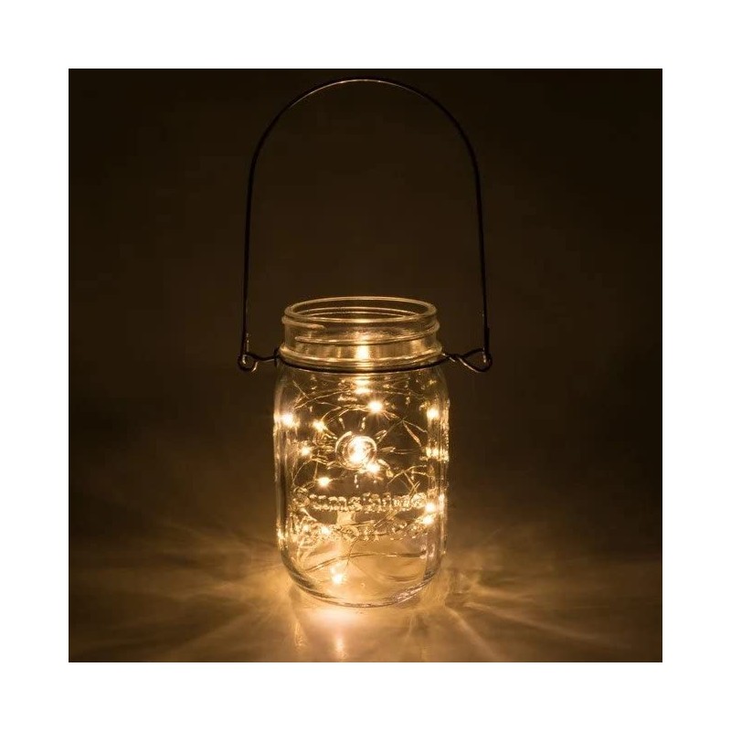 Sunshine Mason Co. Mason Jars with Solar Fairy Firefly String Lights and Hanger Handles Set of 12