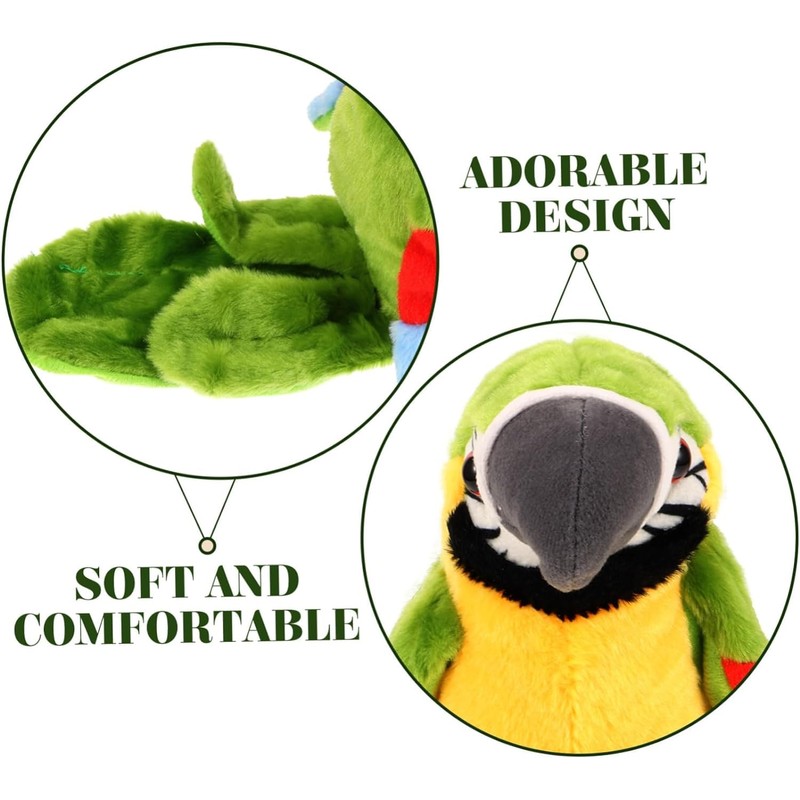 - Best gift for your child: it will mimic any funny high sound, shake his body and flutter with its wings (with the tone of a cute parrot); it can entertain your child all the time. The talking parrot is a plush toy for birthdays, Thanksgiving, Christmas, Easter and other important days.