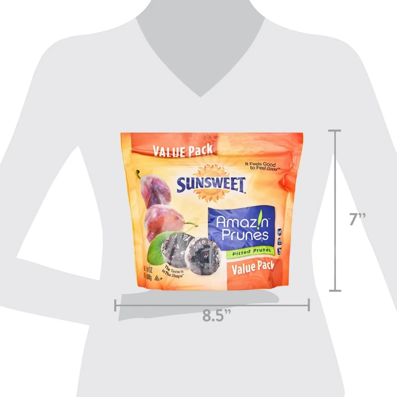 Enjoy living Life to the fullest when you give your body the nutrition from Sunsweet amazin pitted prunes. Only Sunsweet can bring you our patented Pitting process that creates Tastier, more tender Fruit with fewer pits and the Plump round shape we're know for. Each serving of Sunsweet amazin prunes is a good source of fiber perfect for Snacking and recipes. It Feels Good to feel Good.