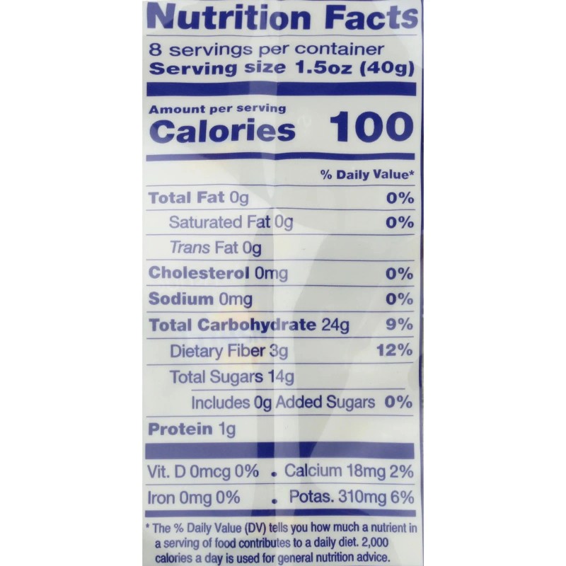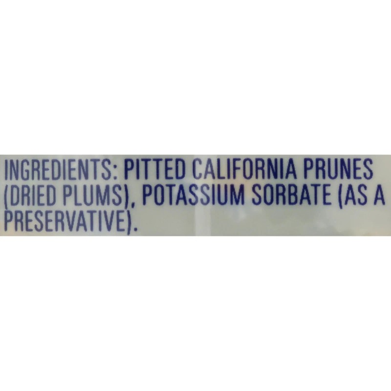 Pitted California Prunes (Dried Plums), Potassium Sorbate (as a Preservative).