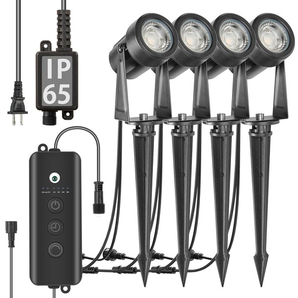 - 【Timable & Dimmable】This kit is equipped with light sensor controller. By receiving the wavelength of the sunlight sensing can be outdoor spotlight automatically turn on/off, but also through function button to select the timer and dimming, adding a layer of convenience to your outdoor lighting