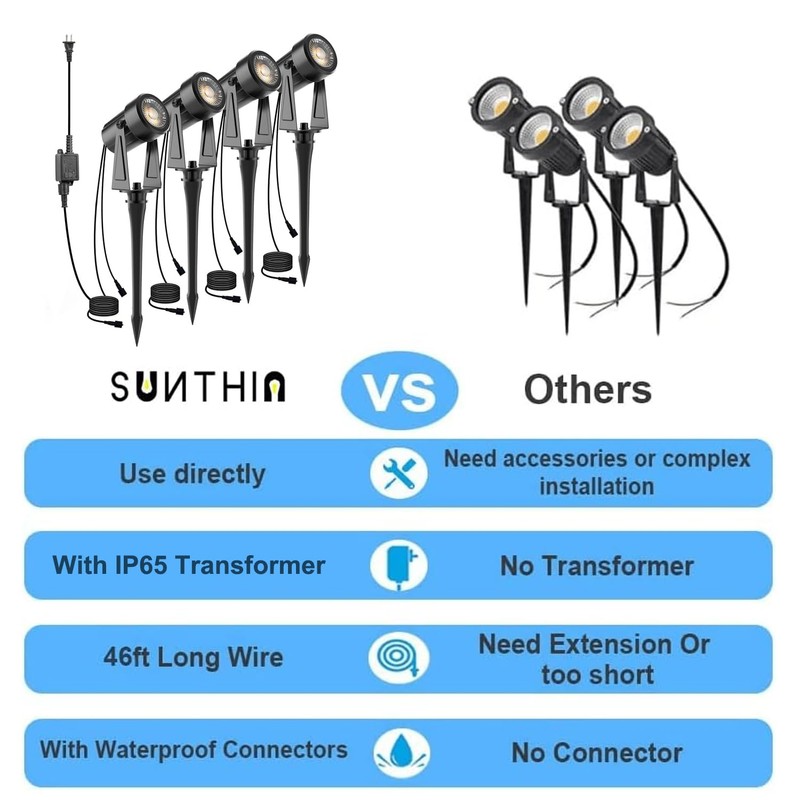 SUNTHIN Outdoor Landscape Lighting, 4 Pack Outdoor Spot Lights with Transformer for Yard, Plant, Lawn, Tree, Flags, House, Garden, Fence Use, IP65 Waterproof & Connectable