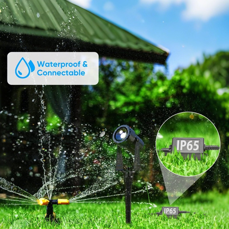 - 【Connectable & Adjustable】Waterproof twist connector for quick and easy connection with single low-voltage landscape spotlight, which does no harm to passersby or pets such as dogs. 270 degree adjustable head let you focus light wherever you need it to, such as walls, trees, flags, fences