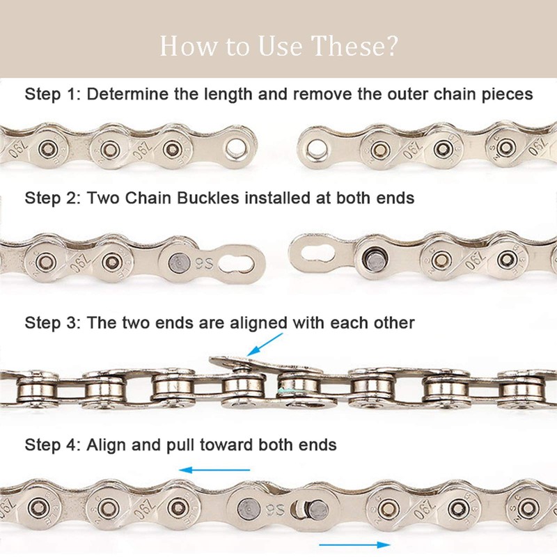 - Practical magic chain buckle, helps for temporary use or repair bike chain when you have a broken chain on the trail or road. Make the chain cleaning and maintenance process much easier.