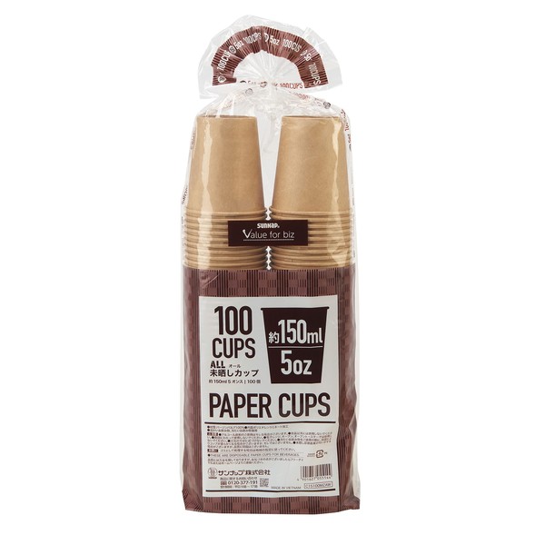 Sunup C15100MZAW Paper Cups, Unbleached, 100 Pieces, Disposable