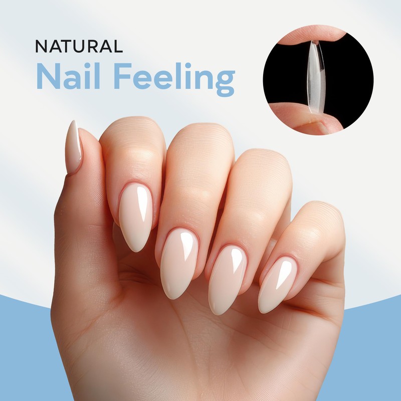 SUNUV presents a set of 600 pieces Medium Almond Nail Tips, meticulously crafted from innovative high-quality PMMA material. These press-on nail extension are designed to be traceless and flexible, ensuring a comfortable and natural manicure experience.