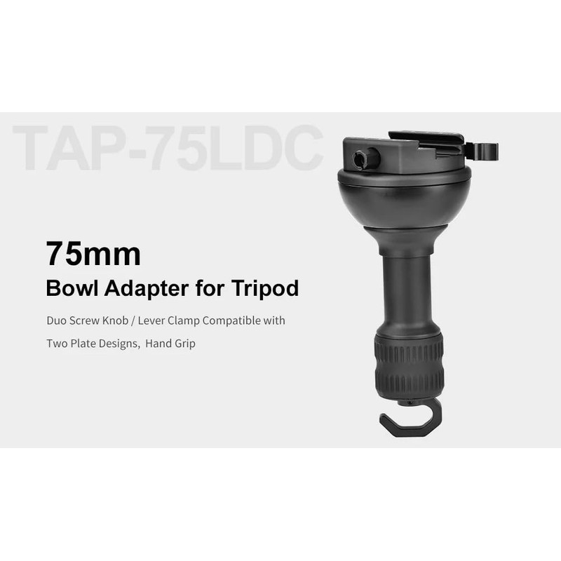 Sunwayfoto TAP-75LDC 75mm Leveling Half Ball Adapter +Duo Lever/Screw Lock Clamp for Video Bowl Tripod Long Handle + Sandbag Hook